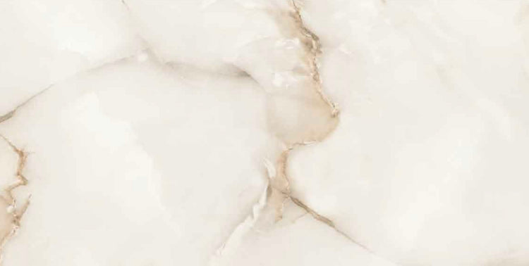 Die großformatige Fliese besticht durch ihre feine Marmoroptik in hellen, beigen bis goldenen Tönen, die eine warme und zugleich stilvolle Atmosphäre schaffen. Die polierte Oberfläche hebt die sanften Farbverläufe und die natürliche Struktur eindrucksvoll hervor und sorgt für eine luxuriöse, glänzende Optik.