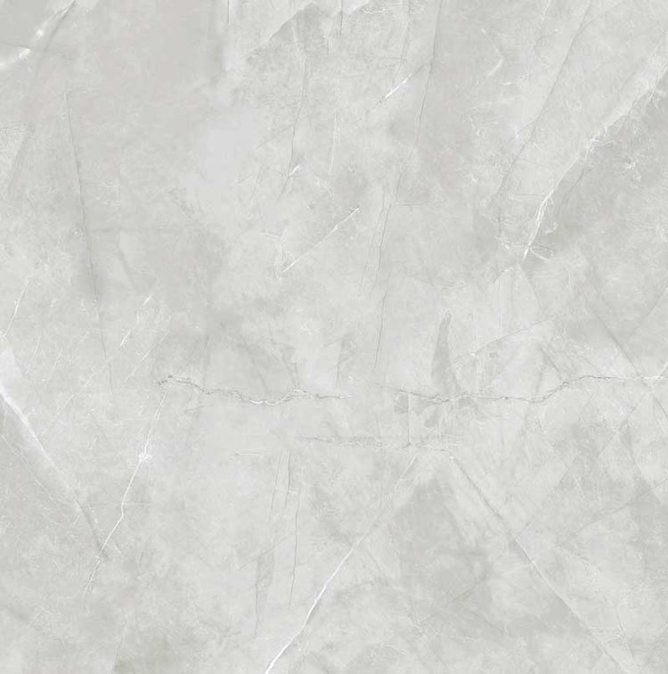 Die helle Grau-Nuance wird von feinen, weißen Aderungen durchzogen, die der Fliese eine exklusive und edle Ausstrahlung verleihen. Die polierte Oberfläche sorgt für eine glänzende Brillanz, die das Licht reflektiert und die natürliche Maserung der Marmoroptik eindrucksvoll hervorhebt.